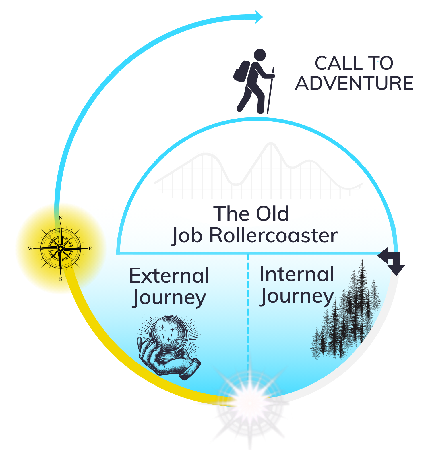 The EXTERNAL JOURNEY ends with a clear and strategic Career Development & Transition Map. You will have explored, tested, and identified the exact role (or business) you’ll pursue next.